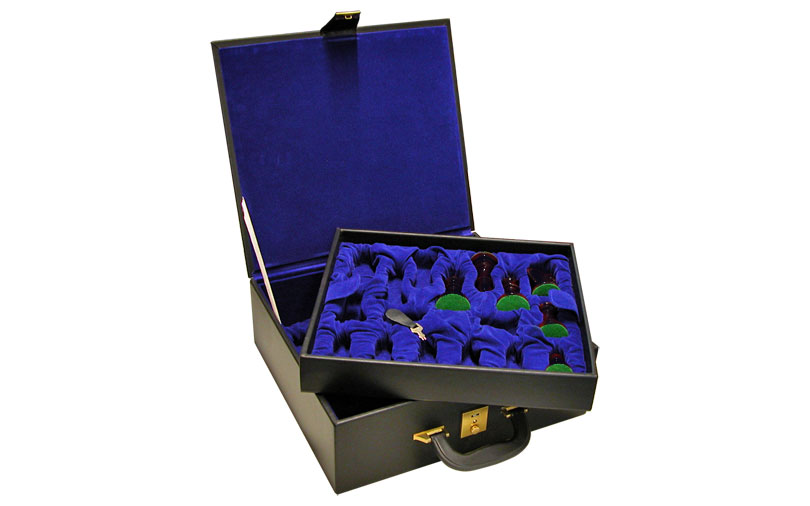 Sono forniti in valigetta di pelle a due livelli dove ciascun pezzo ha il suo alloggiamento.